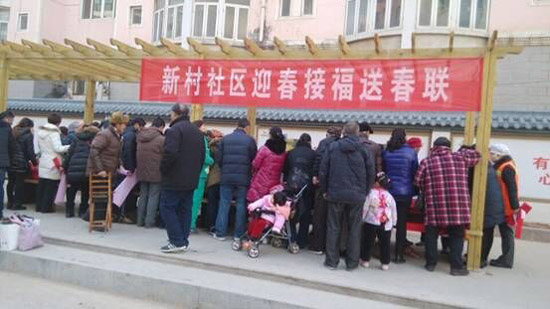 近日,天象物業(yè)公司青和寶地管理處、新村社區(qū)聯(lián)合組織市書法愛好者開展迎新春接福送春聯(lián)系列活動,義務為青和寶地小區(qū)業(yè)主書寫春聯(lián),得到廣大業(yè)主的好評,增添了小區(qū)節(jié)日氛圍。