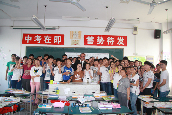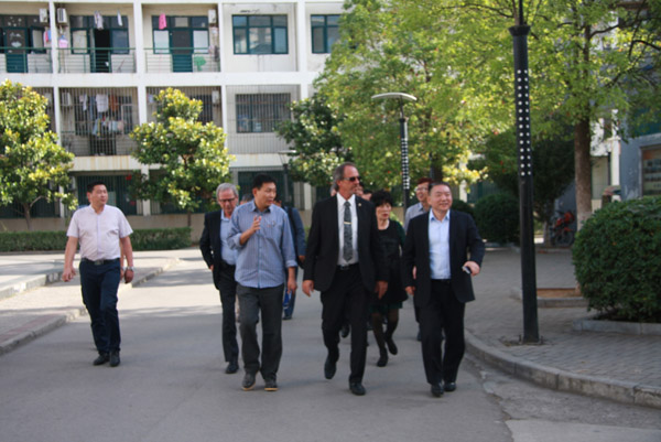 蘭迪市長在孔令發董事長的陪同下參觀淮北天一中學