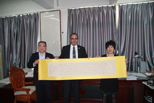 郭光梅校長向蘭迪市長一行贈送書法