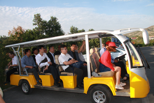 蘭迪市長一行饒有興致的乘坐觀光車參觀烈山區榴園村與石榴文化博物館