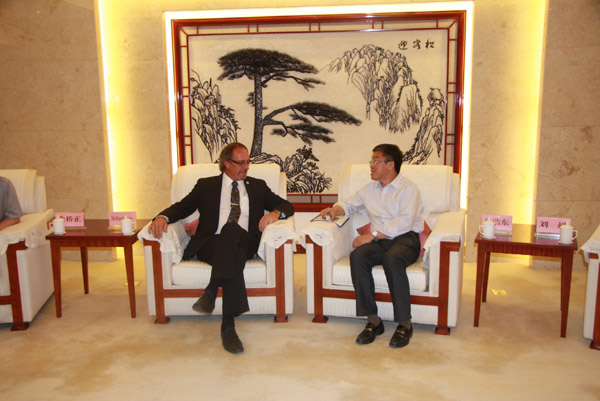 2015928日,加拿大安大略省查塔姆肯特市市長 MR.Randy Hope(蘭迪市長)一行蒞臨集團公司參訪考察,并與孔令發董事長進行商務洽談。集團公司董事長孔令發、總裁徐希慶、淮北華翊文創園項目總經理蔡明鴻等陪同參觀。