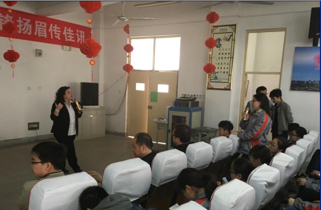 在參訪過程中,Kirsten一行走進天一高中部高一(3)班與初中部初一的3個班級與同學們進行簡短的互動交流。隨后,Kirsten在多媒體教室向同學們推介了查塔姆肯特市的地理區位以及教育環境,還重點向同學們介紹了她們市教育局的教學理念與學習氛圍。最后,Kirsten向在座的學生們發出誠摯的邀請。同時,學生們也就自己感興趣的問題向Kirsten一一詢問。