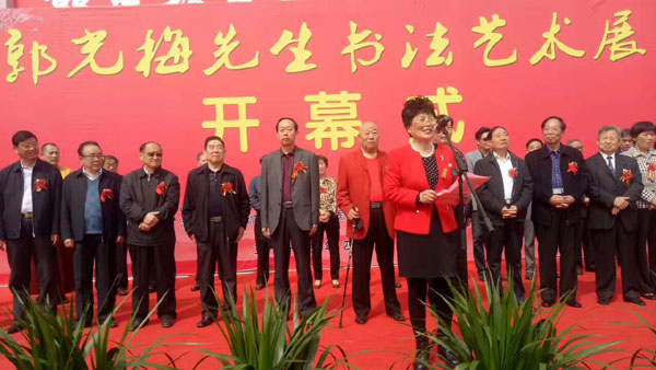 中國毛體書法家協會理事,中國毛體書法家協會安徽分會副主席、開渠書畫院院長、中國毛體書法家協會淮北分會主席郭光梅先生書法藝術展于2017年4月15日上午9點30分在淮北體育場東門淮北市體育中心展廳隆重舉行開幕式。市人大常委會常務副主任方宗澤,市委常委、市委宣傳部部長顧文,市人大常委會副主任楊彥穎、余敏輝,市政協副主席蔣守彬、李彥秋、錢丹嬰,市人大常委會秘書長陳朝祥,市政府秘書長宋偉出席開幕式。